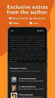 Get lost in a book by unlocking bonus and behind-the-scenes content like short stories, character profiles, exclusive artwork, and worldbuilding notes as you read the story. All story extras are individually curated by the author and revealed by reading!