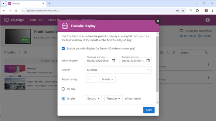 AbleSign lets you remotely manage the content and playlists on your digital signage using a simple web portal. With drag-and-drop functionality and a focus on simplicity, you can easily display your images and videos straight from your computer to your digital signs.