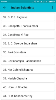 List of Scientists - 1.Aryabhata II 2. Amal Kumar Raychaudhuri 3. Abhas Mitra 4. Anil Bhardwaj 5. Anil Kakodkar 6. Animesh Chakravorty 7. Anna Mani 8. A. P. J. Abdul Kalam 9. Arun Majumdar 10. Arun Netravali 11. Arvind Bhatnagar 12. Ashok Das 13. Ashok Gadgil 14. Ashoke Sen 15. Atul Kumar 16. Birbal Sahni 17. Brahmagupta 18. C. V. Raman 19. C. N. R. Rao 20. C. R. Rao ....and more 150...:)