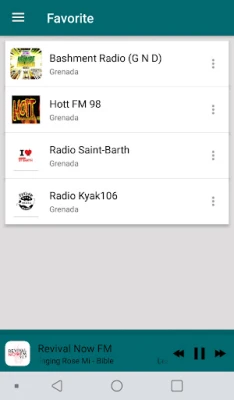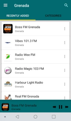 Available radio stations: - Real FM Grenada - Radio Saint-Barth - Radio City Sound FM - Radio Kyak106 - Spiceislander Radio - Hot Shotz Radio - Rebel Nation - Hott FM 98 - Boss FM Grenada - Vibes 101.3 FM - Radio Wee FM - Radio Magic 103 FM - Harbour Light Radio - Caribbean Positive Radio - Bashment Radio - Revival Now FM