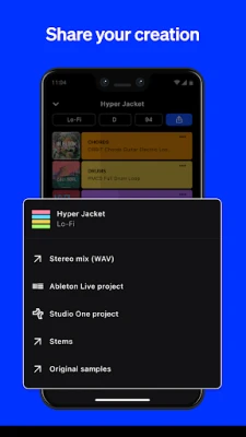 Creating and saving your Stack is just the beginning. Not only is the Stack accessible from anywhere you can access your Splice account, but you can also share it directly with a unique link, AirDrop it to friends, or upload to Dropbox, Drive, or another cloud service right from your device for seamless collaboration. If you work in Ableton Live or Studio One, you can export your Stack as a DAW file and open it up with key and tempo information synced when you’re back in the studio. You can also save as a bounced stereo mix to hear the full idea rendered.