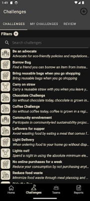 Accept challenges, earn points, challenge others and join teams to work together on common causes.